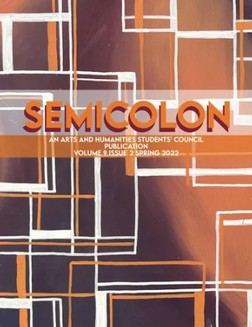 Semicolon is one of the official publications of the Arts and Humanities Students' Council, published bi-annually. Semicolon aims to showcase the best writing and thinking by students at Western -- the provocative, the considered, the critical analysis of our world and the stories we tell ourselves about it.